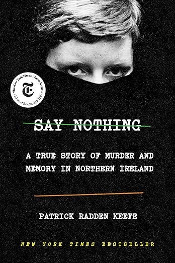 I wrote a review of Patrick Radden Keefe’s book about The Troubles in Northern Ireland a few years ago, and hope readers who did not see the review then will look at it now. Say Nothing (although exceedingly shocking) is my favorite non-fiction book of the last ten years.